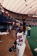 Kirby Jr. at the Kirby Puckett Statue at Target Field