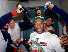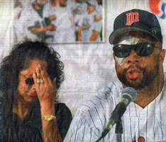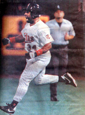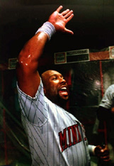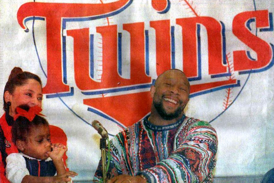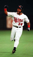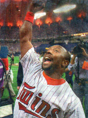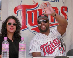 Kirby Jr. at the Kirby Puckett Statue at Target Field